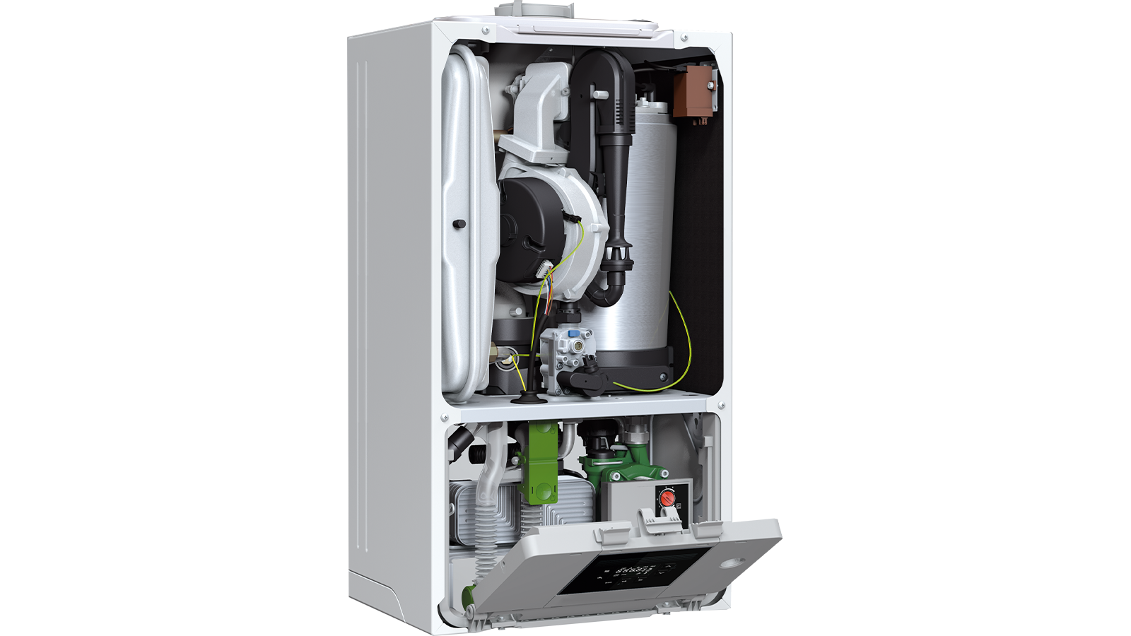 Η LCD οθόνη του Logamax plus GB122 παρέχει άμεση πρόσβαση στις βασικές λειτουργίες του λέβητα και κάνει τη χρήση του πιο εύκολη από ποτέ. Μέσω της πλατφόρμας αυτοματισμών EMS plus και σε συνδυασμό με τον ηλεκτρονικό πίνακα ελέγχου RC200 διατίθεται προαιρετικά μία πληθώρα λειτουργιών όπως η αντιστάθμιση της εξωτερικής θερμοκρασίας, με τα απαραίτητα αισθητήρια.